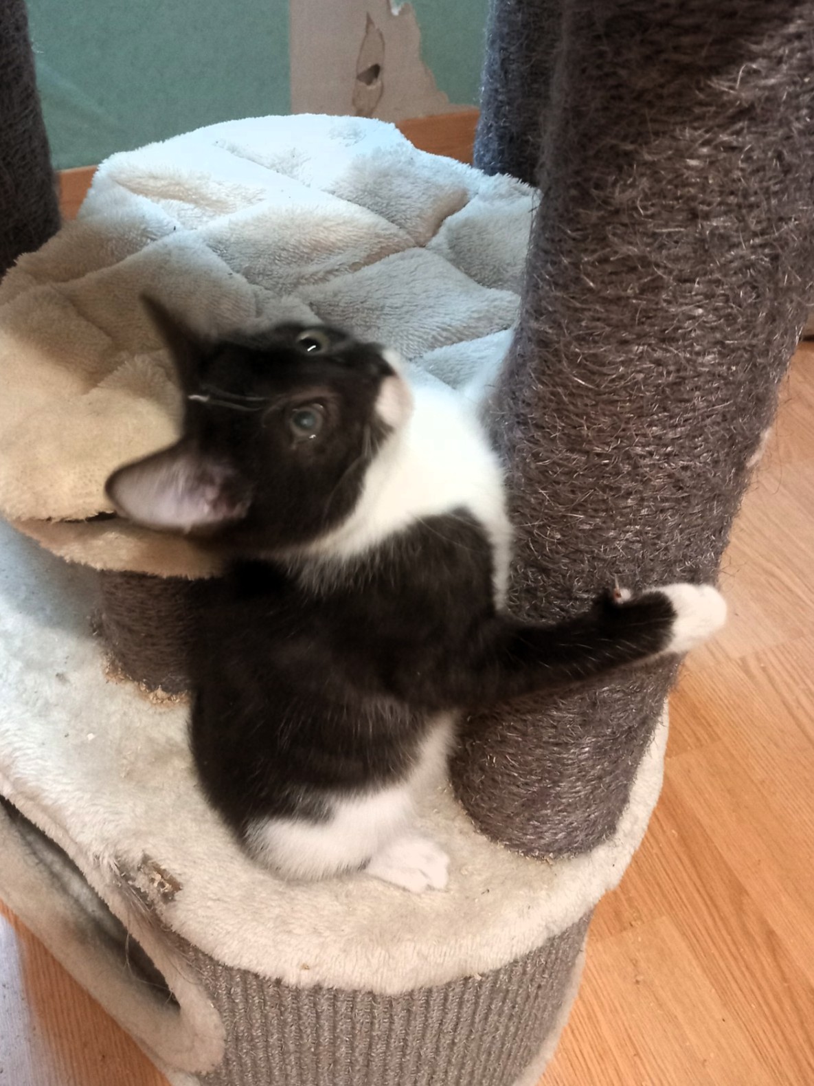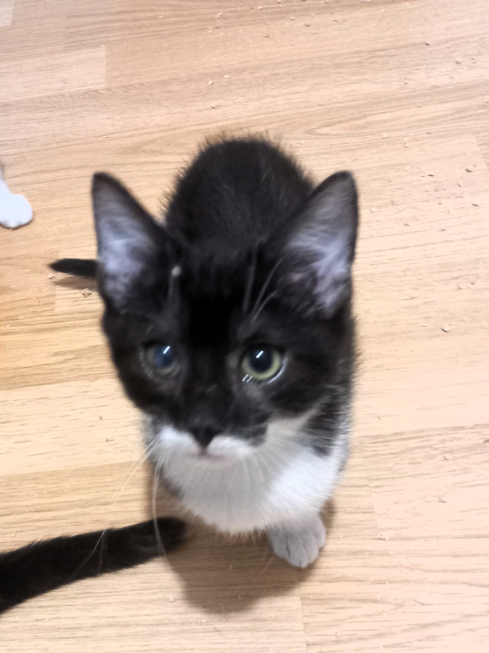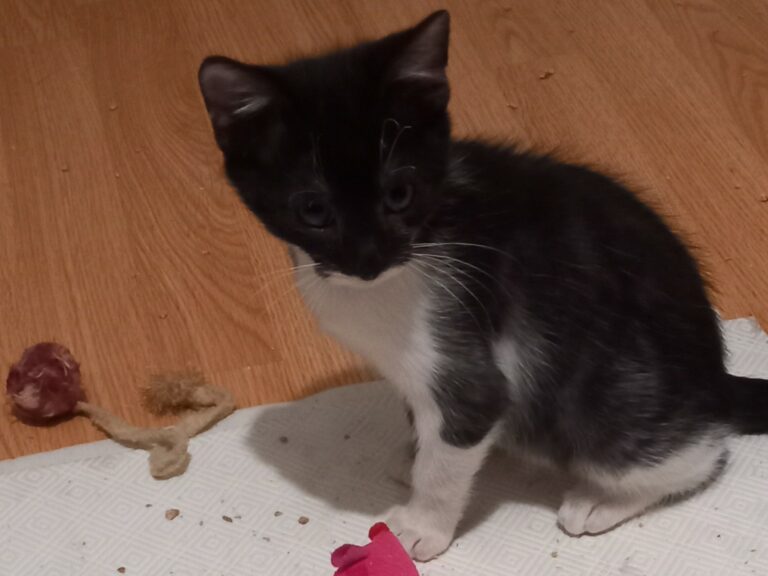 Ali est un adorable chaton noir et blanc. Il est très proche de l’humain. Il est toujours en demande de caresses et de câlins. Il est très joueur, très énergique et très gourmand.