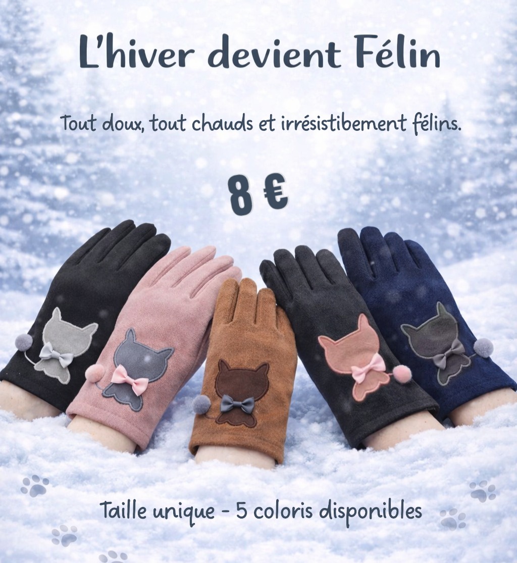 Nos gants sont là pour réchauffer vos mains avec style et bonne humeur avec une touche féline irrésistible !